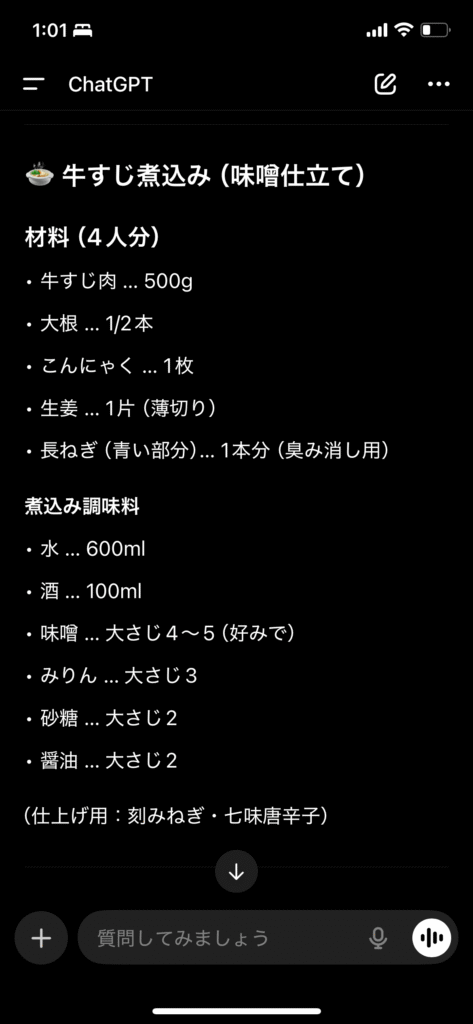 レシピが思い浮かんだらもう即ChatGPTに聞きます!