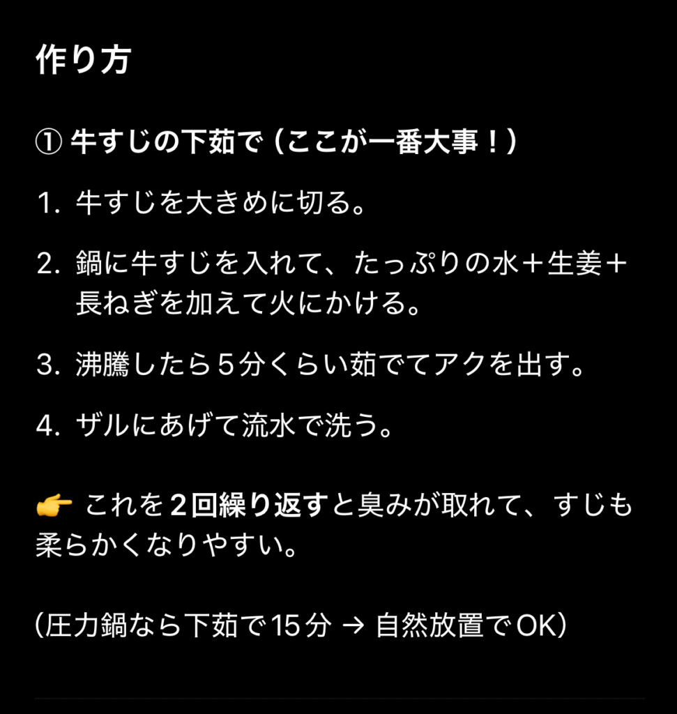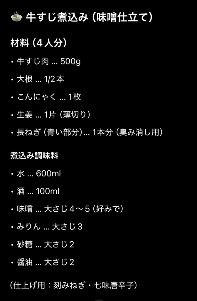 自分の中の「絶品牛筋味噌煮込み」を完成させます。(なんか必殺技みたいになってかっこいい)