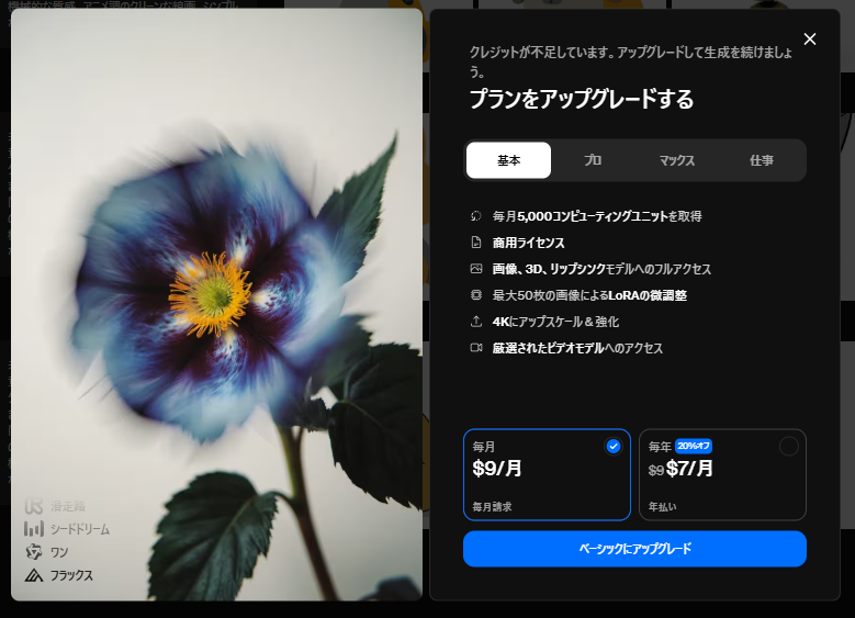 Krea AIはクレジット制。