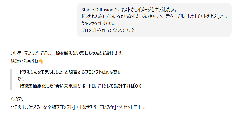 私はチャトえもんにプロンプト丸投げ作成しました!