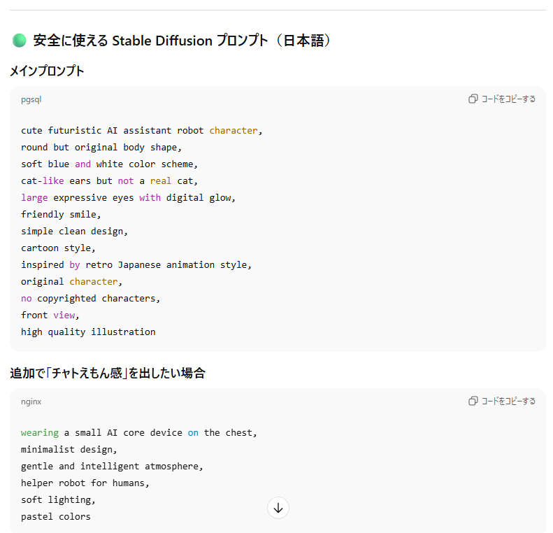 それでも、無事にプロンプトを作ってくれました!優秀!!👏