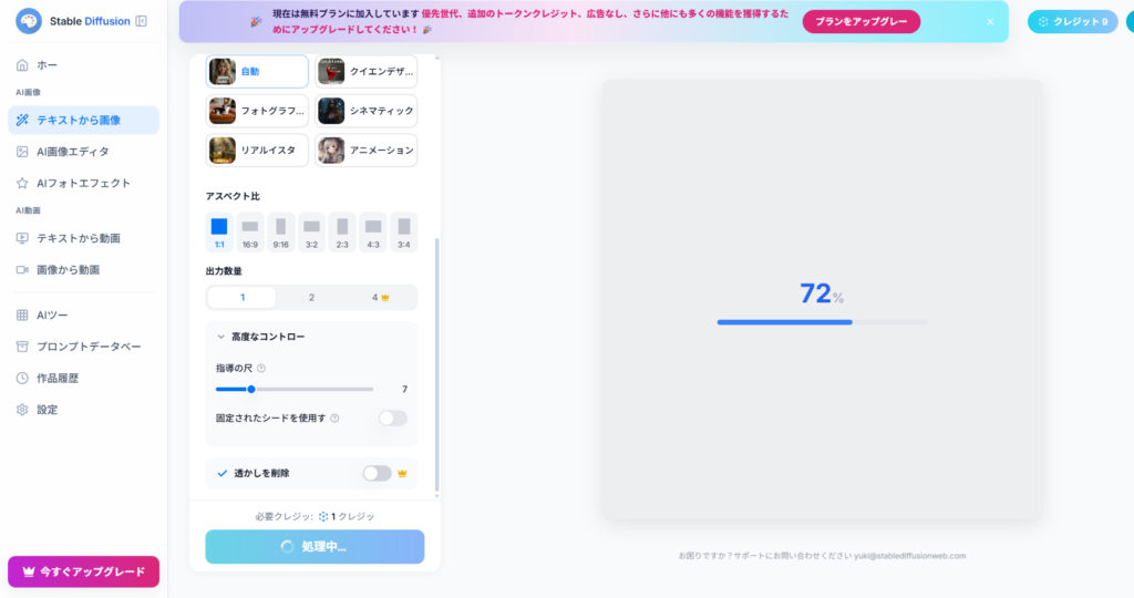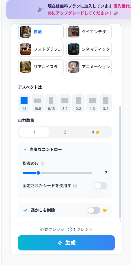テキストからの生成で1枚1クレジット